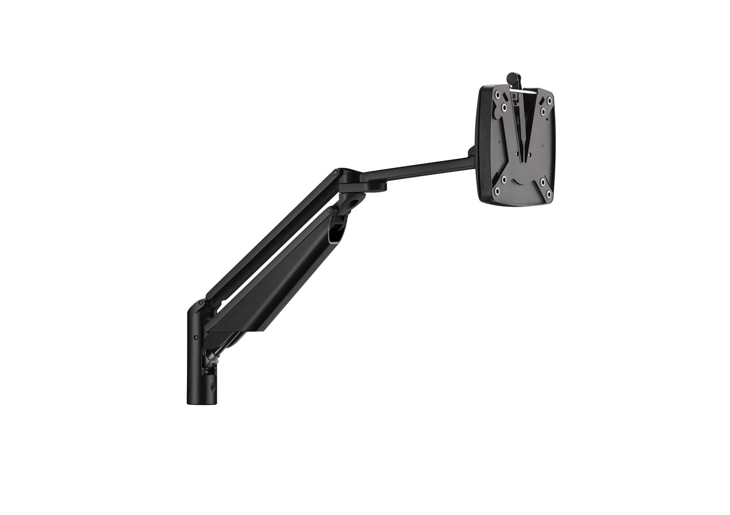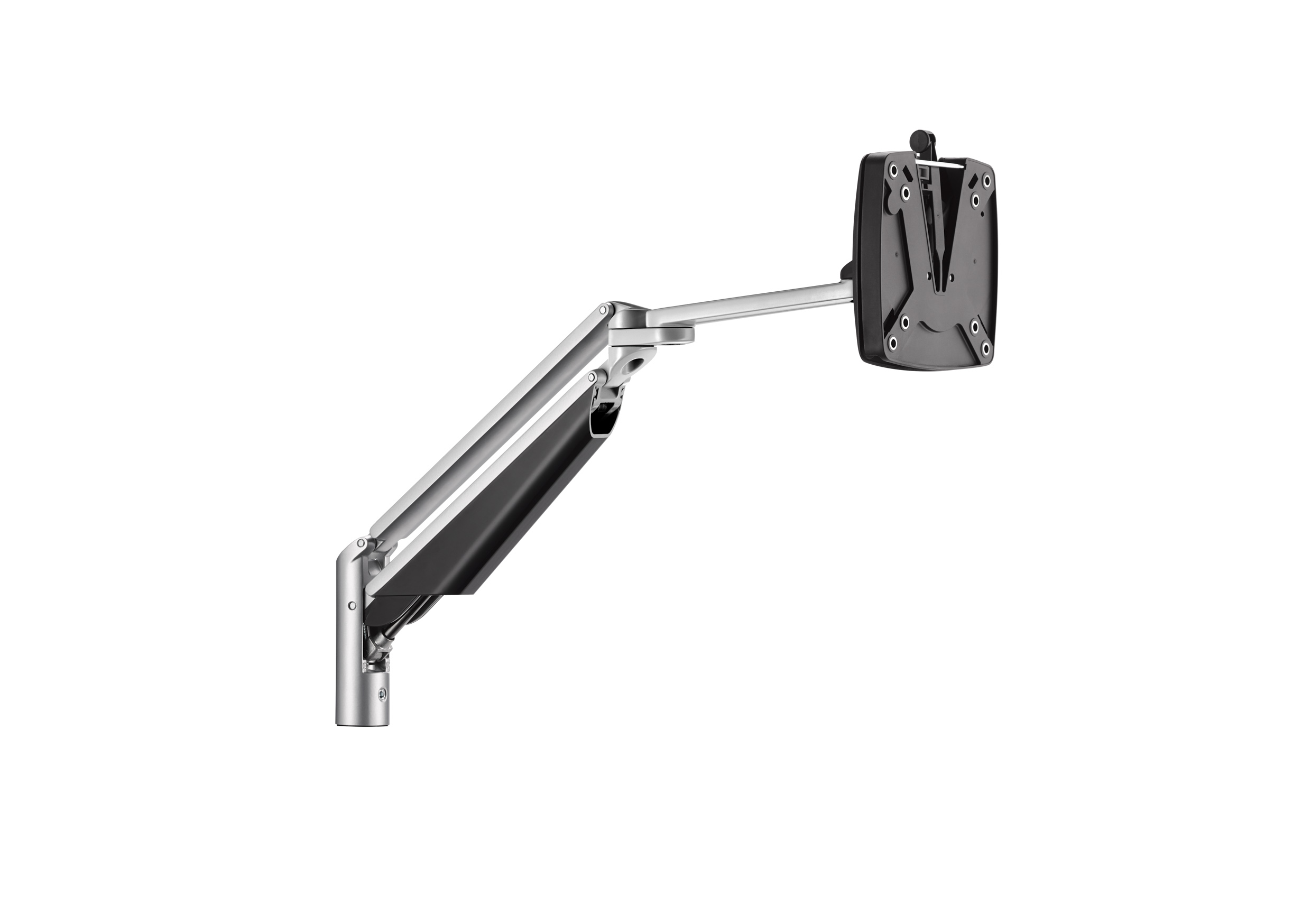990+3008+000, Black/ 990+3001+000, White/ 990+3009+000, Silver 2-part monitor supporting arm with gas spring technology for comfortable, ergonomic adjustment.
